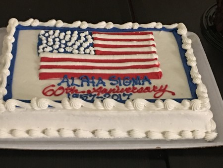 Alpha Sigma celebrated its 60th anniversary in style in San Luis Obspo over the Veteran's Day weekend from November 10th through November 12th, 2017. Activities included a welcoming dinner at the Priddy's; an amazing tailgate party and BBQ at Cal Poly, hosted by Bob & Nancy Davis; and tickets to the Cal Poly - Sacramento State football game, where Alpha Sigma veterans were honored during the haltime show. Alpha Sigma was also recognized for its financial support of Cal Poly, including the "LIB-rat" endowment program.